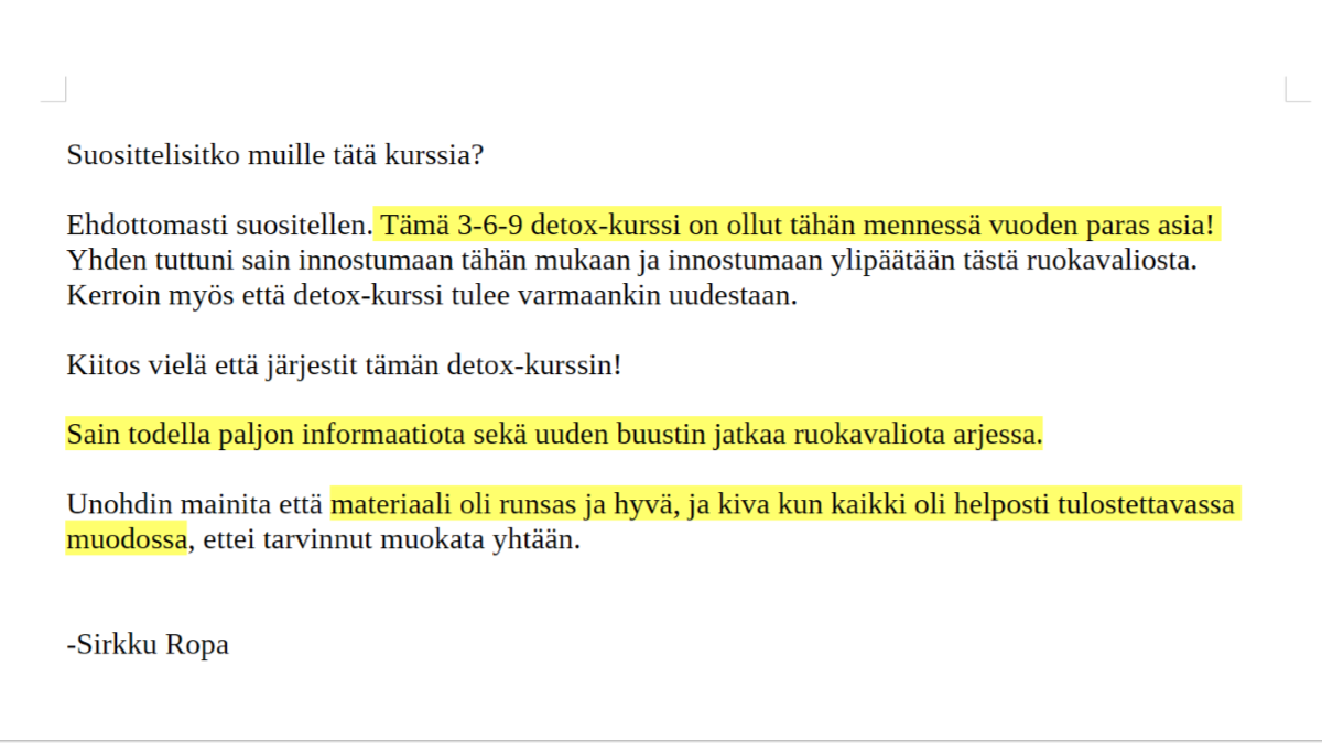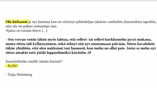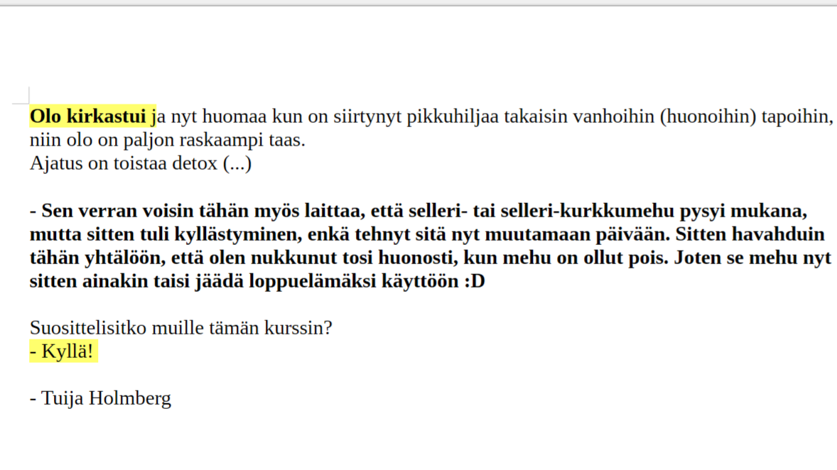 ”Tämä detox-kurssi on ollut tähän mennessä vuoden paras asia!”